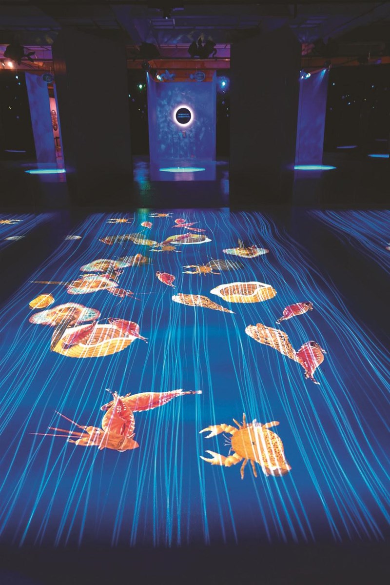 以故宮文物〈海錯圖〉、〈海怪圖記〉為素材,打造海底互動隧道沉浸式空間。圖╱故宮提供