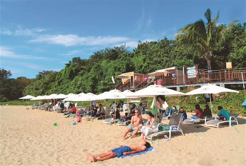 屏東墾丁昨天白天陽光普照,氣溫升至攝氏二十度,遊客紛紛到遊憩沙灘戲水、做日光浴。圖╱潘欣中