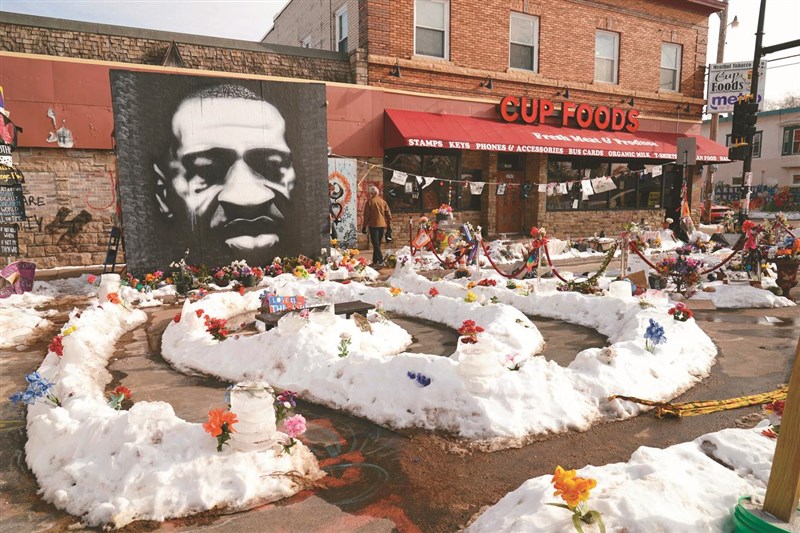 美國明尼蘇達州非裔男子佛洛伊德遭白人警察壓頸致死案,明尼阿波利斯市政府十二日以兩千七百萬美元和家屬達成民事和解。圖為該市區以佛洛伊德命名的廣場。圖/美聯社