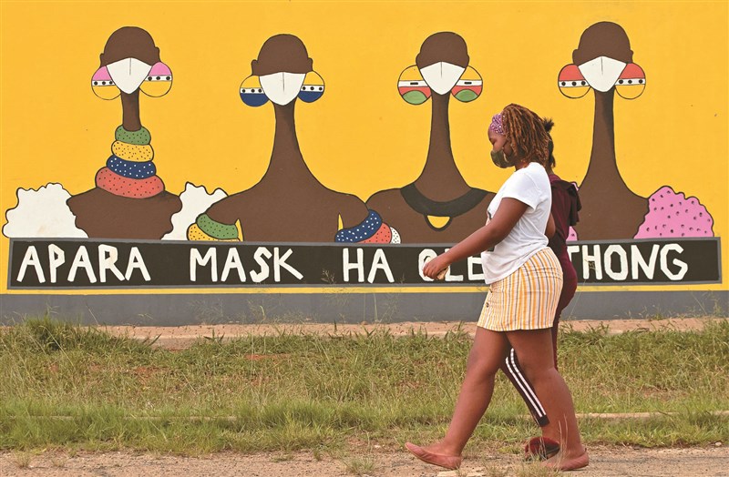 全球已知的英國變種病毒株「B.1.1.7」、南非變種病毒株「B.1.351」和巴西變種病毒株「P.1」等三大變種新冠病毒,又出現全新變種新冠病毒「P.3」,這種新型病毒更具有傳染性,還可能削弱疫苗保護效果。圖為南非有關單位呼籲民眾防疫戴口罩。圖/美聯社