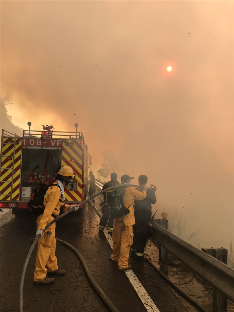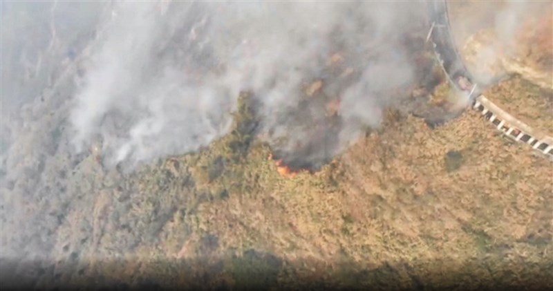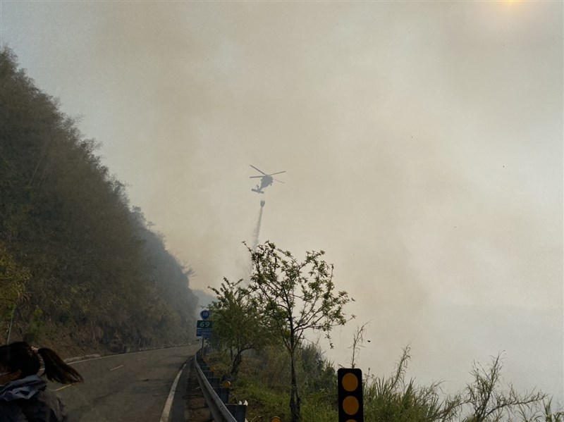 圖/魯永明第五區養護工程處指出,這起火警發生在阿里山鄉169線達邦公路28.5K上邊坡處,火勢蔓延到台18線68.7K下邊坡,林務局國家森林救火隊集結投入滅火,空勤直升機用曾文水庫的水加入支援。