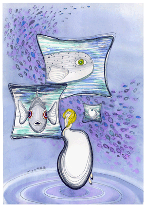 館真是一個神秘、迷人的場所,不管是台灣水域館、珊瑚王國館,或是世界水域館,一幕幕大小不一的玻璃帷幕裡,優游著種類繁多、色彩繽紛的各色水族精靈,活潑富生命力卻又那麼寂靜無聲。相對於熙來攘往、興奮不已、聒噪不休的遊客,水族們顯得沉穩、安靜、優雅。