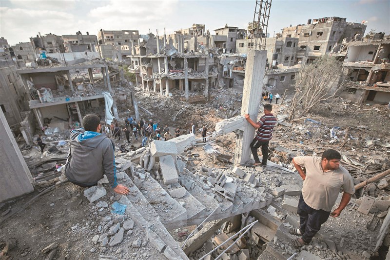 以色列夜間空襲加薩走廊北部,巴勒斯坦人檢視受損的房舍。圖/美聯社