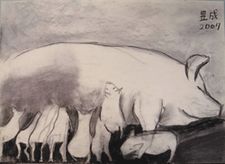 《聽我話畫》豬 ◎施忞樺/文 新莊牙米兒童畫室/圖 |2007.10.01 語音朗讀 440觀看次 字級 大 中 小 運用媒材:水彩〈聽我話話--豬〉 很多人對豬的印象就是貪婪、肥胖和噁心、貪吃,隨性邋遢地過生活。這樣的印象和實際上的豬相差了十萬八千里。豬的智商比狗還高,在所有的動物裡排名第一,既友善合群又好玩。豬是很敏感又溫馴的動物,豬把大地當作家,喜歡在地上打滾,用身體去接觸萬物。豬會自然地保持整潔,是絕不會把睡覺、吃飯或是活動的地方弄髒的。但是因為養豬場無法給予豬選擇環境的權力,因此我們才會將豬和骯髒畫上等號。所以,其實豬是聰明、逗趣又愛乾淨的動物喔!〈動手畫畫〉 圓滾滾的豬,好可愛喔!尤其鼻子是豬的特徵之一,一定要表現出來。▲泰山鄉義學國小四年一班 曾馨慧(1)馨慧畫的小豬,動態很不錯,構圖也十分特別,頗具個人特色!▲新莊市光華國小六年二十一班 林彥竹(2)彥竹的小豬頭抬得很高,看起來快樂多了。小豬的輪廓線條掌握的很好,神韻也掌握的不錯。▲新莊市民安國小五年四班 徐有儀(3)有儀畫面中的兩隻小豬,感情一定很好,緊緊的靠在一起。從正面畫並不容易,但有儀表現的很好。▲泰山鄉明志國小三年五班 安語晴(4)語晴畫的豬,看起來心情好像不太好耶!頭低低的模樣,加上灰濛濛的背景,看了就讓人覺得又愛又憐!▲新莊市裕民國小四年四班 姚昱成(5)昱成畫的圖好溫馨喔!一群小豬爭著喝奶,豬媽媽真是辛苦呀!每隻小豬的動態都不同,增加了畫面的趣味性。 前一篇文章 《有趣的童謠》想念好朋友 下一篇文章 《心靈小郵差》 熱門新聞 01水晶物理性 與化學性質2026.03.1702新竹.尖石 群峰疊翠山色佳 泰雅歌聲伴霧霞2026.03.1603店貓上班摸魚睡翻 萌樣逗樂網友2026.03.1804越南大選 料共產黨壓倒性掌控2026.03.1605澎湖食農教育 向下扎根2026.03.1906飛天白馬秀 燈會大亮點2026.03.1507大馬急轉彎 撤回美對等貿易協議無效說 2026.03.1808北美最乾燥加州死谷 罕見繁花錦簇2026.03.1809美海軍引進機器人 爬牆維修艦艇2026.03.1910【分享時刻】某些愛2026.03.18 訂閱電子報 台北市 天氣預報 台灣一週天氣預報 相關報導 寶寶成長禮 抓周做公益聆聽受傷的童年 北市家防中心推兒少保護展支持18歲公民權 家扶:更符公平正義影音/可愛童音 我還在咳嗽 幫我請假啦影音/天生善良 小女孩哭:我不要吃動物吃什麼都癢?如何減少嬰兒食物過敏