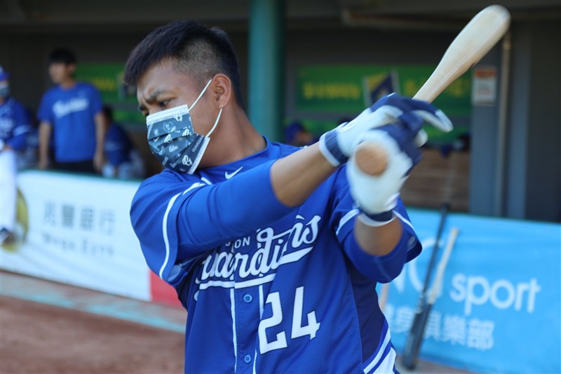 中職一、二軍賽事即日起延賽,圖為富邦悍將隊陳凱倫戴口罩練習。圖/富邦悍將隊提供