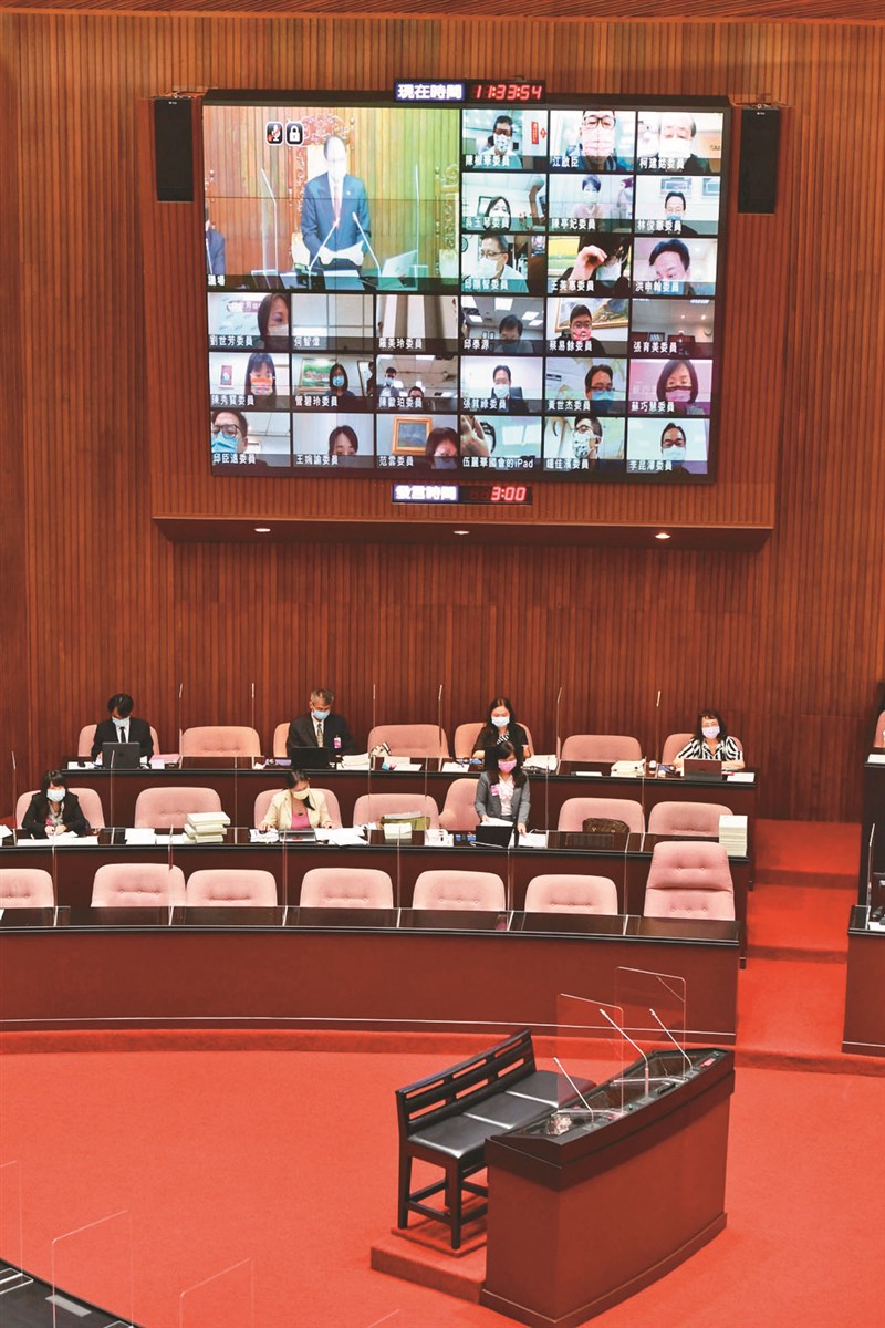 新冠疫情嚴峻,立法院昨天首度舉行視訊表決演練,因應未來有必要進行視訊會議時,能夠準備就緒。圖/中央社