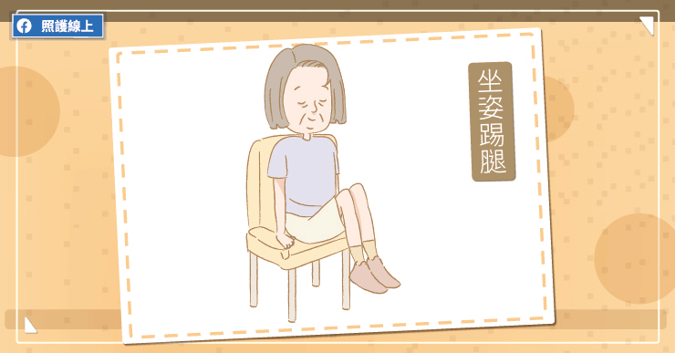 坐姿踢腿身體坐直,微微向後傾,大腿離開椅面,雙手撐在椅子上幫忙保持平衡,雙腳交替踢出,過程中維持大腿離開椅面。過程可以慢,掌握控制的力道。