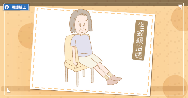 坐姿緩抬腿身體坐直,微微向後傾,雙手撐在椅子上幫忙保持平衡,雙腳打直併攏,緩緩將雙腳往天花板方向抬起。