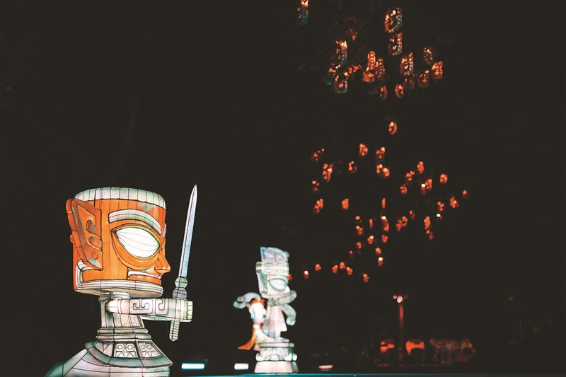 5月28日晚,四川德陽廣漢三星堆博物館舉辦「走進三星堆 讀懂中華文明」主題活動,透過三星堆主題燈光秀、「古蜀絲夢」三星堆國潮大秀等主題文創展,向全球遊客發出邀請。活動現場發布了三星堆新發現6個「祭祀坑」的最新發掘成果,並聯合多家機構與學校,共同開啟三星堆文化全球推廣戰略合作。圖為28日所拍攝的三星堆主題燈展。圖/新華社