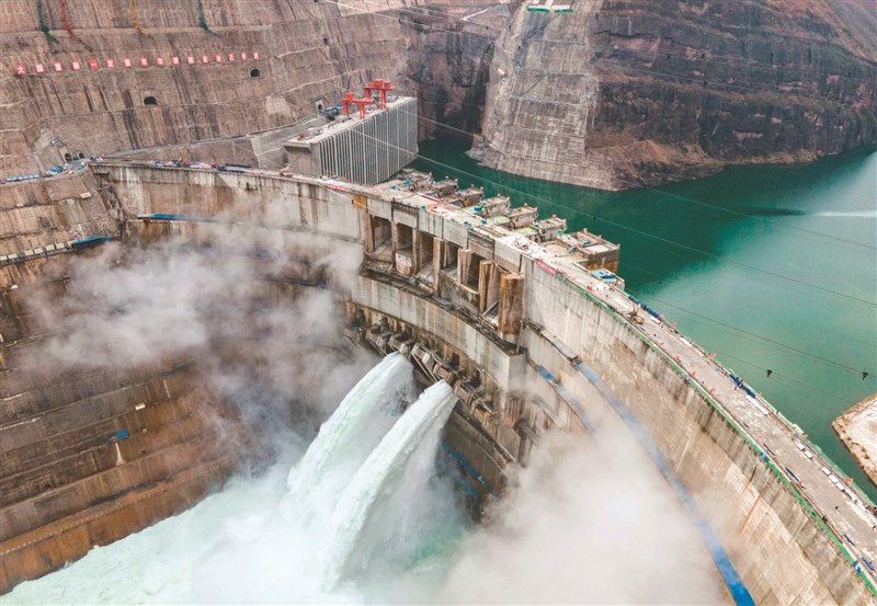 白鶴灘水電站從二○一○年開始籌建,二○一七年四月開始澆築,其最大壩高二百八十九公尺,大壩主體混凝土澆築總方量達八百萬立方公尺。