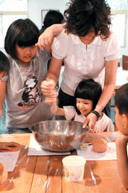 當烤箱打開時,頓時彌漫著濃濃糕餅香,令人垂涎三尺,小朋友隨即將自己創作剪紙放在蛋糕上,等老師灑上巧克力粉後,一個看似普通蛋糕馬上變身為極有創意的藝術糕點,讓小朋友捨不得吃,因為蛋糕內包裝了父母親子間的愛。