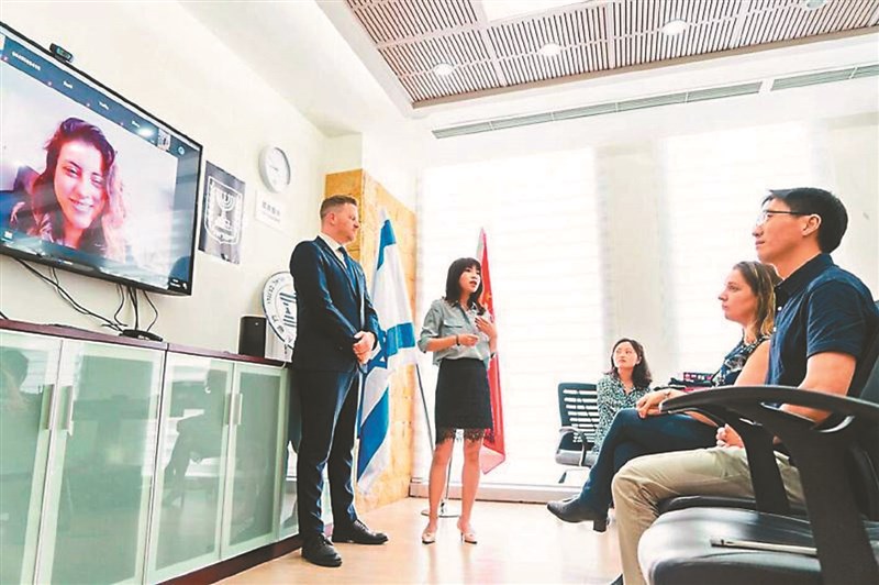 蔣偉(右)與瑪阿雅在以色列駐成都總領事館內視訊連線。圖/取自網路