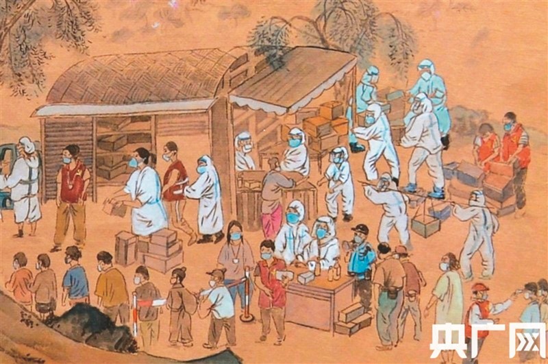 【本報綜合報導】中國大陸廣東這波新冠疫情來勢洶洶,廣州、佛山兩市啟動全員核酸檢測,各方眾志成城抗疫的場景打動無數人。央廣網報導,一位二十幾歲的美術工作者陳志傑,用五天時間以「清明上河圖」的風格手繪一幅佛山版的「抗疫上河圖」,將現實生活中的核酸採樣場景,以鮮活生動的方式展現出來。