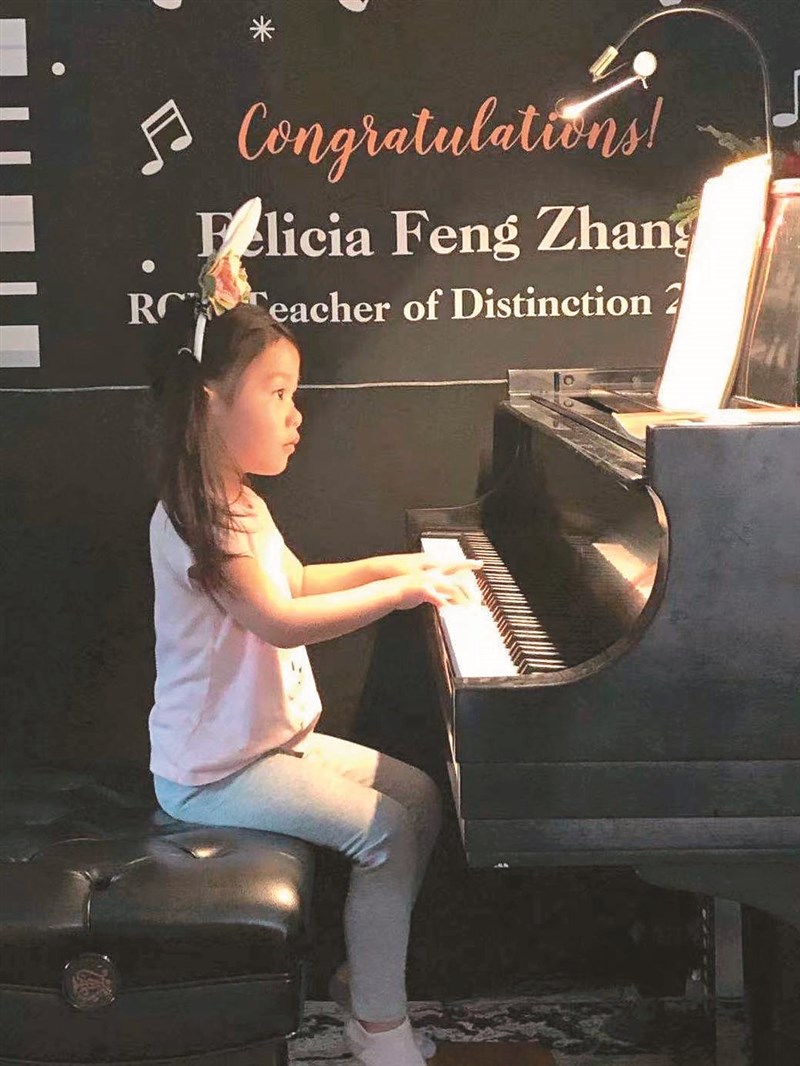 去年十二月,張峰推薦謝心遙以最小年紀參賽選手的身分,參加精英國際音樂比賽(Elite International Music Competition)拿下第一名;接著又先後在美國職業音樂人才大賽(American Protégé International Music Talent Competition)與全國青年大師比賽(National Young Maestro Competition)抱得頭獎。
