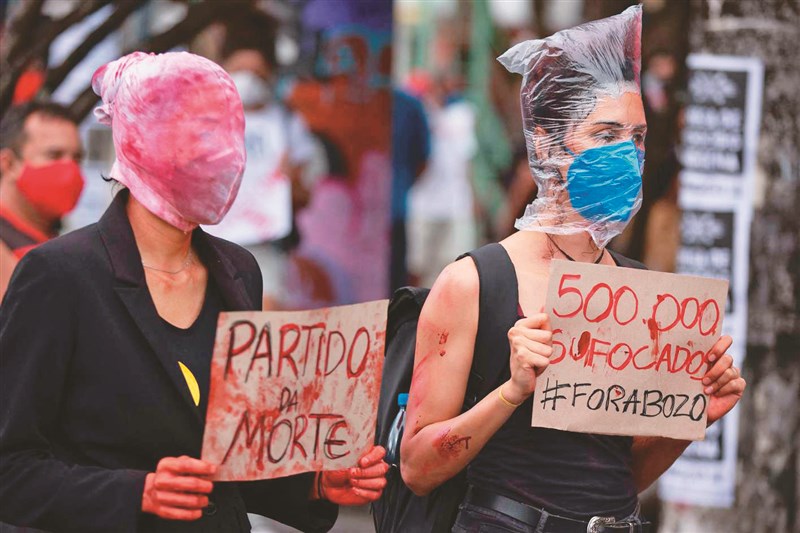 【本報綜合外電報導】巴西19日累計逾50萬人染疫病故,成為美國之後全球死亡病例第二高的國家,數10座城市民眾在這令人心碎的日子上街抗議,要求總統波索納洛辭職下台。許多批評人士將這悲劇歸咎於總統抗疫失敗,以及採購疫苗牛步,專家則憂心疫苗接種進度緩慢,加上冬季來臨,恐讓疫情惡化。