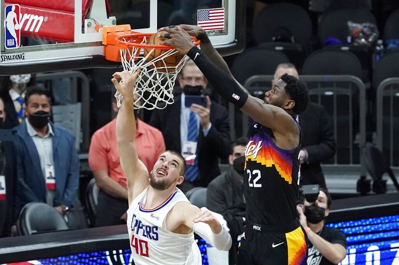 【記者鍾亞芳綜合報導】NBA美國職籃西區決賽第2戰,鳳凰城太陽隊22日於主場迎戰洛杉磯快艇隊,終場前0.7秒,艾頓(Deandre Ayton)接獲克勞德(Jae Crowder)底線發球,第一時間以空中接力灌籃取得超前分,114:113絕殺對手,取得系列賽2連勝。