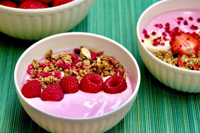 真菌發酵製成的ChromoRed,將優格染成粉紅色。圖/Chromologics