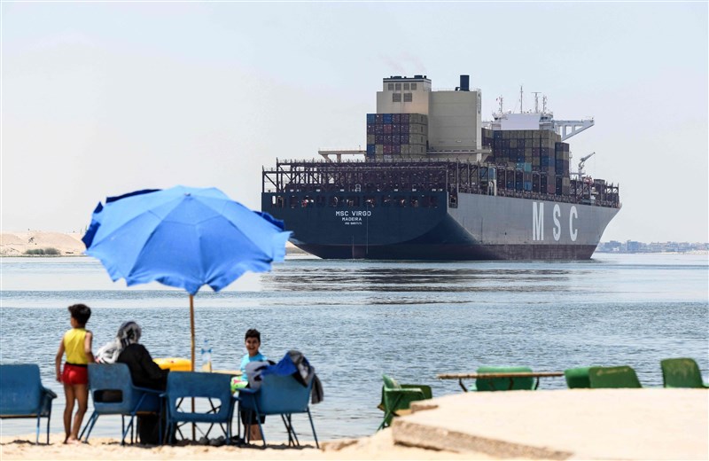 長榮海運巨型貨櫃輪長賜輪擱淺、扣押3個月,日前談定賠償金,將於7日駛離大苦湖。圖/法新社