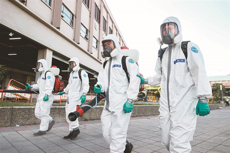 環南市場昨日上午進行清消,國軍六軍團三三化學兵群負責此次任務,化學兵深入環南市場內部進行徹底消毒。