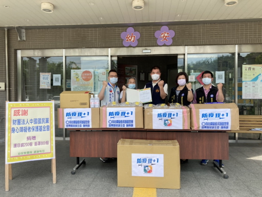 中國國民黨身心障礙者保護基金會捐贈酒精等防疫物資給社工、居服員。圖/幼安教養院提供