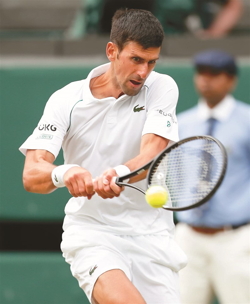 世界球王約克維奇5日輕鬆處理一記反拍回擊。此役他以直落三,第12度闖進溫網8強。圖/新華社