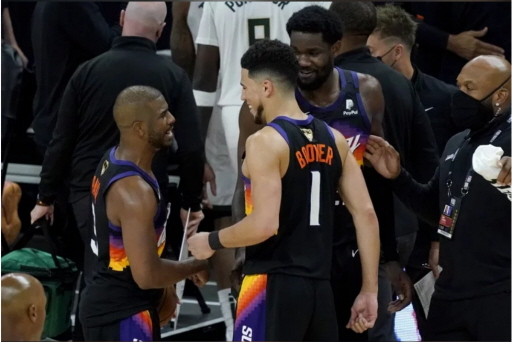 【記者曾博群綜合外電報導】NBA總冠軍賽6日首戰,鳳凰城太陽隊來勢洶洶,靠著三劍客保羅(Chris Paul)、布克(Devin Booker)、艾頓(Deandre Ayton)強勢發揮,一路從開賽主導節奏到終場,以118:105於主場力壓公鹿隊,取得系列賽首勝。
