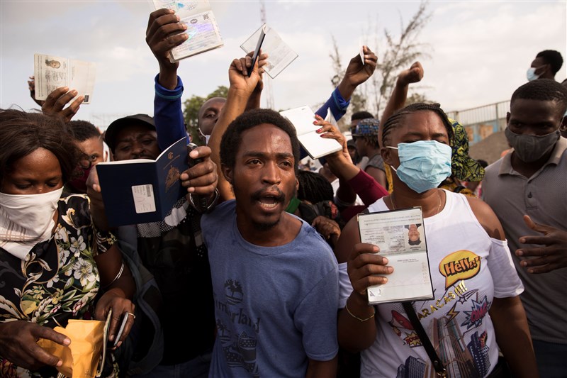 海地已請求美國派軍保護交通、能源等重要基礎設施安全。圖為海地民眾9日擠在美國使館前表示希望得到美簽離境。圖╱取自網路