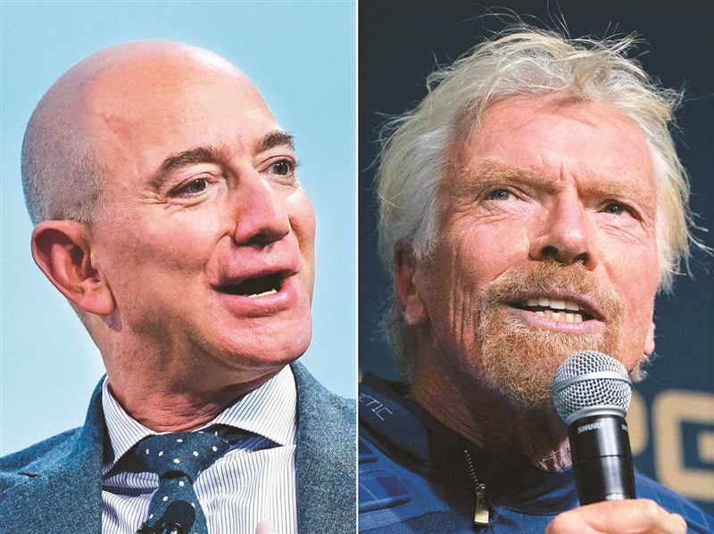 貝佐斯(左)與布蘭森的太空競賽,已經起跑。圖/法新社