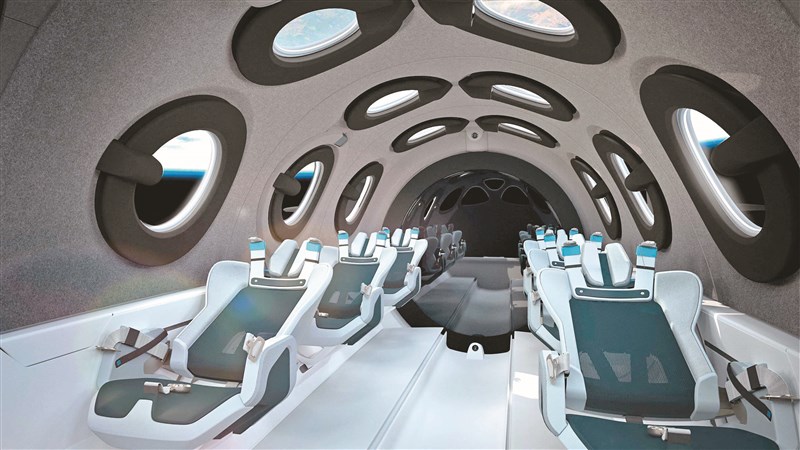 布蘭森所搭乘太空船「團結號」的艙內座位。圖/法新社