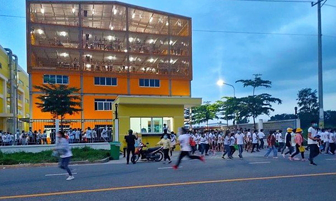 台資企業安普新國際有限公司員工聽聞有同事確診新冠後,數百人推開工廠鐵門逃走。圖/取自vnexpress