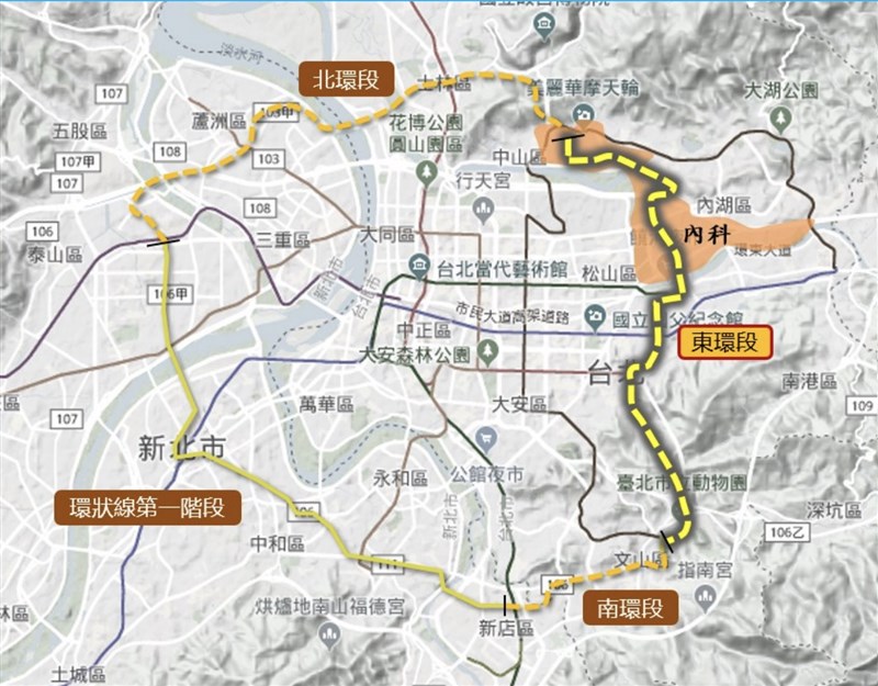 北捷環狀線第一階段串起大坪林與新北產業園區,已於去年通車營運,北環段及南環段則為第一階段路線的延伸,目前正在執行招標作業,預計今年動工。東環段首尾兩站分別連接北環段及南環段,可補齊環狀線最後一段路網,今年一月交通部將環境影響評估報告提送環保署審查,今天進入環評初審。