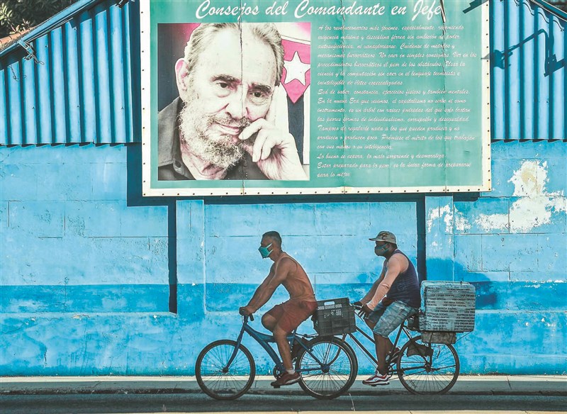 古巴爆發近數十年來最大規模示威,國際關注。圖為哈瓦那街頭一幅已故領導人卡斯楚的海報。圖/法新社