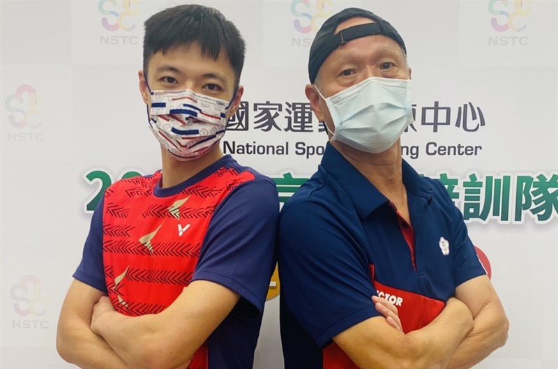 「羽球王子」王子維(左)與教練欒勁(右)。圖/國訓中心提供