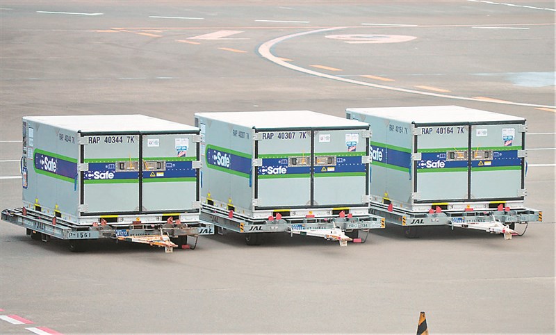 日本贈台97萬劑AZ疫苗。圖為裝載疫苗貨櫃。圖/中央社