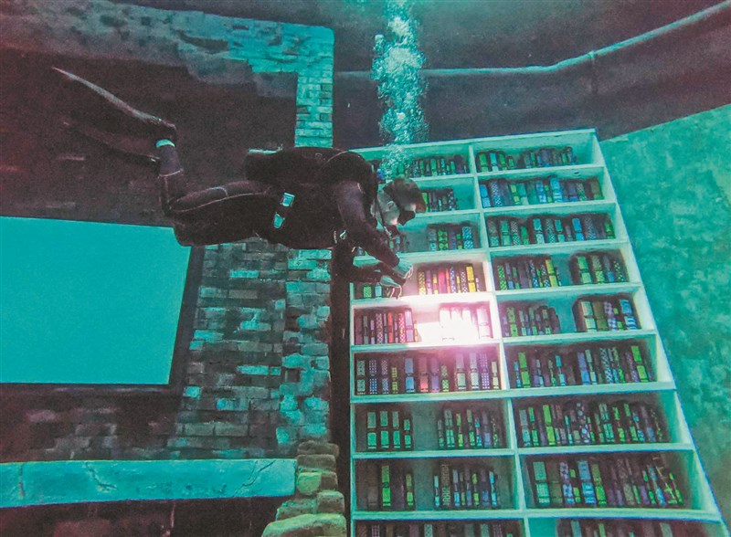 阿拉伯聯合大公國杜拜近日一座深度60公尺潛水池啟用,打破世界紀錄,池底還有座「水底城市」,供潛水客探索。圖/法新社