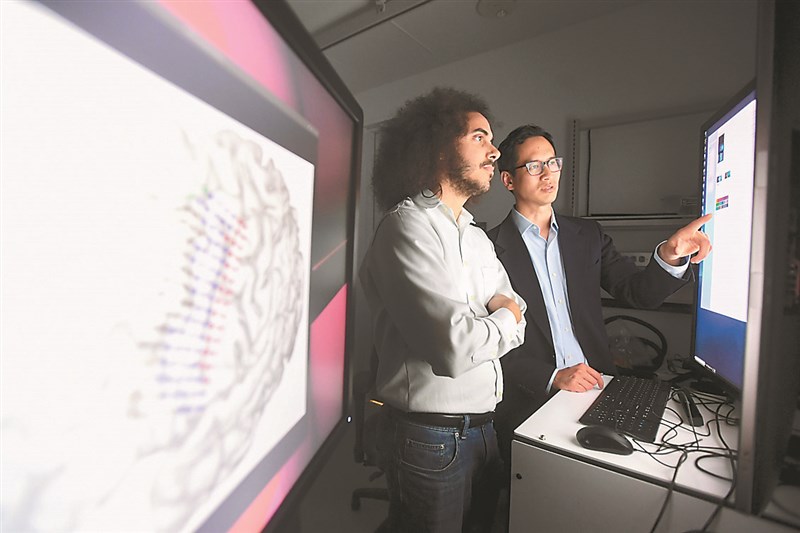 舊金山加大華裔醫師張復倫(右)領導的團隊正在研究,如何藉電腦的幫助讓癱瘓者與外界溝通。圖/美聯社