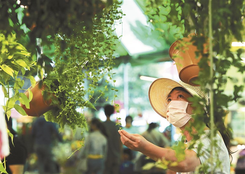 台北建國假日花市十七日起恢復營業,昨吸引不少民眾前往買花、賞花。