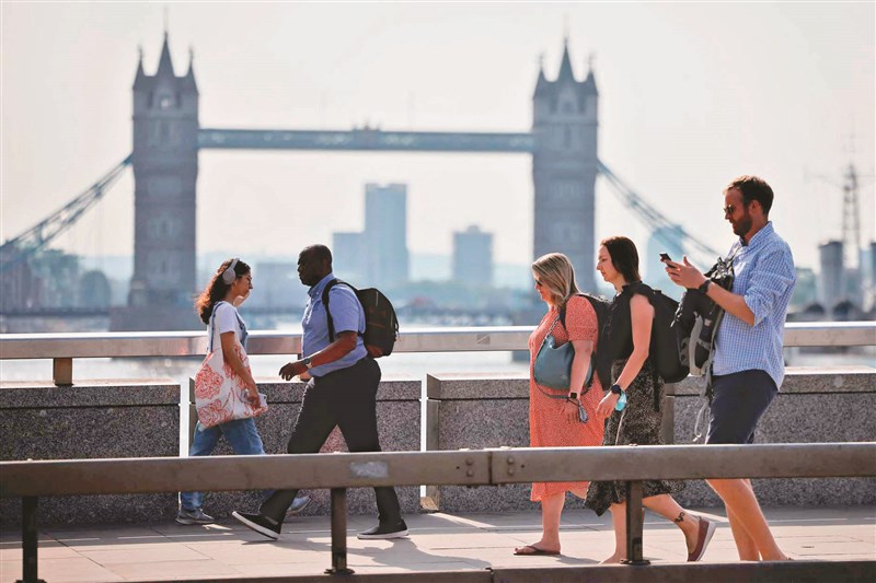 英國19日零時起廢除口罩佩戴令,許多行人果然不戴罩。圖/法新社