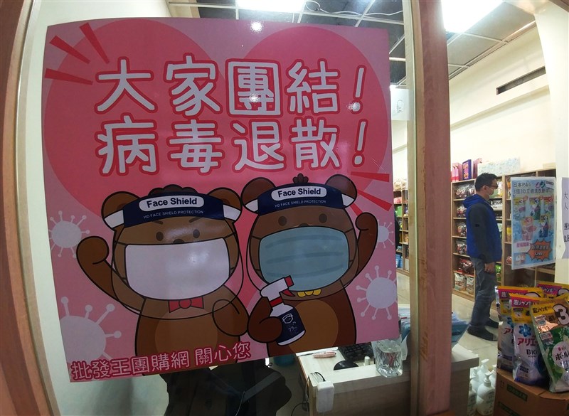 店家提醒民眾戴口罩,一起對抗疫情。圖╱中央社