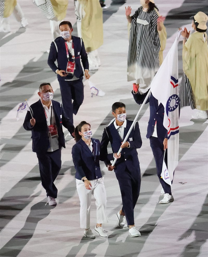 因疫情緣故,開幕儀式參與人數受到限制,各代表團隊職員與教練僅6人可參與,選手則沒有限制,中華代表團由總領隊蔡辰威領軍,聯絡官梁毅鵬(駐日代表處顧問)、體操教練蔡恆政、醫師林瀛洲及林聖章與代表團總幹事徐孝慈參加,選手部分,除了兩名掌旗官,另有輕艇激流選手張筑涵、游泳選手黃渼茜與體操選手丁華恬參加。