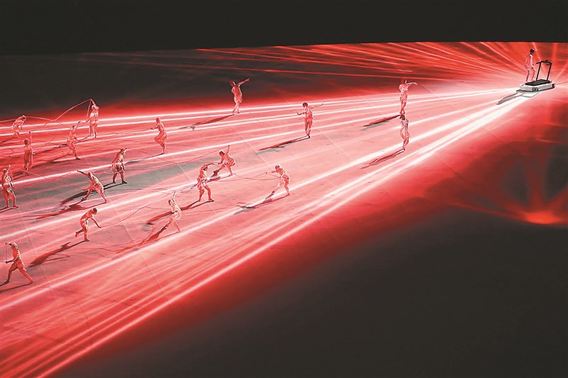 東京奧運23日開幕表演精采,圖為舞者在炫麗燈光下獻藝。圖/法新社