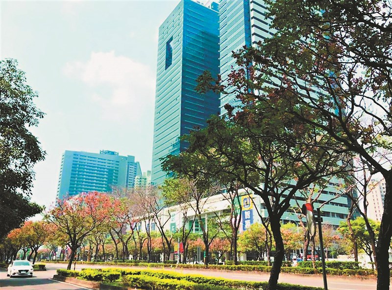 疫情警戒從三級降到二級,外商銀行與壽險業對投資新方向有不同的看法。圖為台中市七期市政路林蔭大道的大型商辦區。圖/資料照片