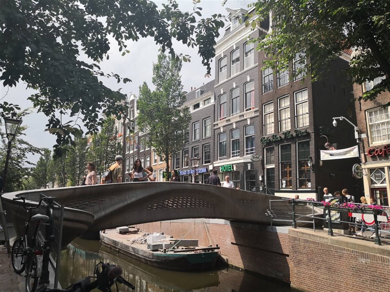 世界第一座3D列印鋼橋 阿姆斯特丹紅燈區亮相 |2021.07.26 語音朗讀 1388觀看次 字級 大 中 小 世界第一座3D列印鋼橋荷蘭亮相,橋由不銹鋼製成,重量超過六噸,橫跨運河近40英呎(12多公尺)。圖/妙益 文與圖 / 妙益什麼?!荷蘭皇后Maxima現蹤!阿姆斯特丹紅燈區!想必一定有不尋常的事吧。沒錯,世界第一座3D列印鋼橋於7月15日在紅燈區亮相,皇后Maxima特別盛裝出席。圖/妙益這座橋全部由不銹鋼製成,重量超過六噸,橫跨運河近40英呎(12多公尺),於2018年首次在荷蘭埃因霍溫設計周展示時,就贏得無數獎項,包括荷蘭設計獎和觀眾票選獎, 該項目團隊還因此開創性的作品,而於2018年獲得歐盟委員會頒發的Starts獎。圖/妙益彎曲的不銹鋼結構由總部位於阿姆斯特丹的3D金屬列印技術公司MX3D製造,該工藝將先進的機器人技術與焊接相結合。 在四個機器人的幫助下,整個印刷過程只用了六個月。 此橋樑由 Joris Laarman Lab 設計,Arup 擔任首席工程師,將在原有人行道修復期間使用,預計使用兩年。這座未來感十足的人行天橋裝有感應器,可以記錄各種測量數據,包括空氣品質、氣溫、何時需要維修及每天有多少行人過橋等。據說該公司建造的下一座橋樑將是讓人們在橋上喝咖啡,雖然瘋狂,但荷蘭人喜歡挑戰,有夢,就要想辦法實現!圖/妙益 前一篇文章 烟花登陸 上海急轉移36萬人 下一篇文章 法迎戰第4波疫情 擴大健康通行證適用範圍 熱門新聞 01古坑桐花季 18日浪漫登場2026.04.100215%小琉球海龜曾受傷 癒合均需1年半2026.04.1003拚戰職籃26年 野獸林志傑引退 2026.04.1004襪子怎麼洗 翻面清潔效果佳2026.04.1005堅硬外殼農藥殘留少 鳳梨酪梨是乾淨蔬果2026.04.1006以轟黎巴嫩 伊朗關荷莫茲2026.04.1007【印象旅人】阿里山森鐵首航記2026.04.1108巨型貓咪 進駐香港機場 2026.04.1009陳念琴擊退北韓女將 亞錦賽奪金2026.04.1010【同窗共遊】老友相聚溪頭深呼吸2026.04.10 訂閱電子報 台北市 天氣預報 台灣一週天氣預報 相關報導 習會俄外長 敲定普亭上半年訪陸川普:美伊戰爭 非常接近結束東京神社 杜鵑花海日本櫻島火山 爆發習會桑傑士 反對世界退回叢林法則紐約格紋日遊行