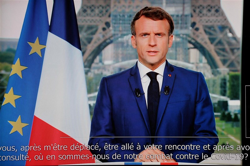 法國總統馬克宏12日晚間發表全國演說,宣布8月起民眾到餐廳用餐須出示健康通行證。圖/法新社