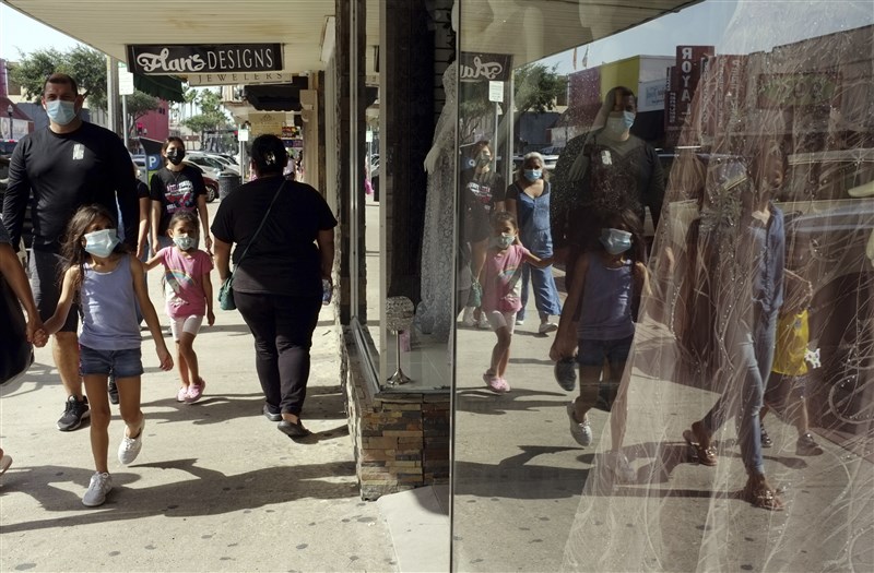 美國5月中鬆綁口罩指引,建議已完成新冠疫苗接種民眾室內室外免戴口罩,現在因Delta擴散,CDC表示,打完疫苗室內外仍要戴口罩。圖/美聯社