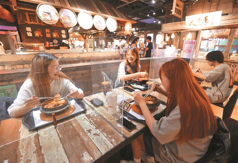 昨天起雙北餐廳有條件開放內用,民眾開心的和朋友一起吃飯。圖/林澔一