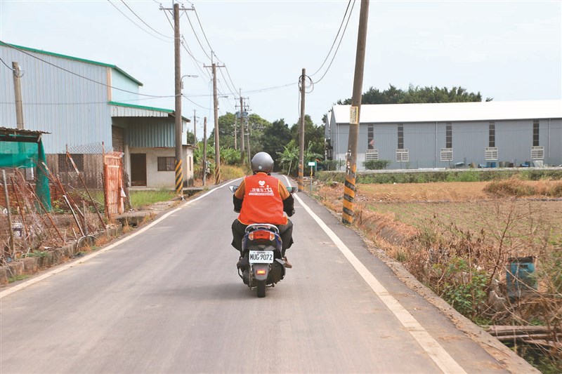蘇清和騎著機車,穿梭在鄉間小路為獨居老人送餐的身影。圖/中華聖母基金會提供