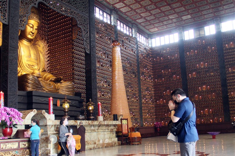 佛光山大雄寶殿陸續有人前往禮佛,好不容易盼到開放,更要把握與佛接心的機會,在疫情中祈求身心安頓。圖/人間社記者李生鳳