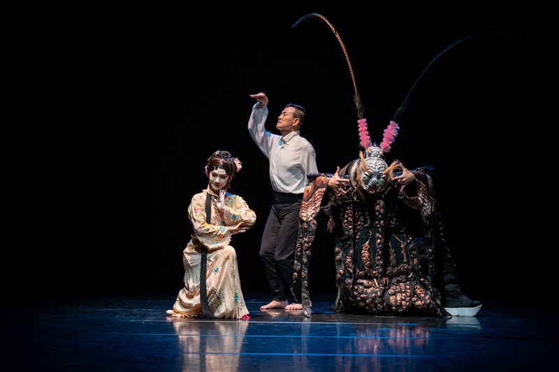 另外,對於《蛻變》的造型設計,被人們所讚譽、帶給觀眾「破格驚喜」的猙獰蟲殼造型,「戲曲老祖先太棒了,我們永遠是寫意的」,吳興國表示,這隻蟲什麼都不像,是從京劇的軟靠來做蟲殼造型,概念則來自於蘭陵王面目猙獰的面具,蟲鬚就用兩個翎子詮釋,「整個合在一起,又是蟲又是人,又是心靈中壓縮的卡夫卡和吳興國。」