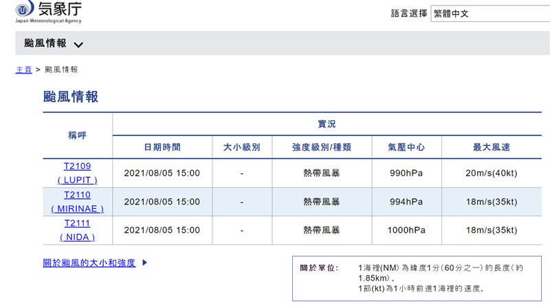 氣象局資料顯示,原位於日本東南方海面的低壓於今下午2時發展為輕度颱風,編號第11號(國際命名:NIDA,中文譯名:妮妲),對台灣無直接影響。將往東北、日本南方海面方向走。